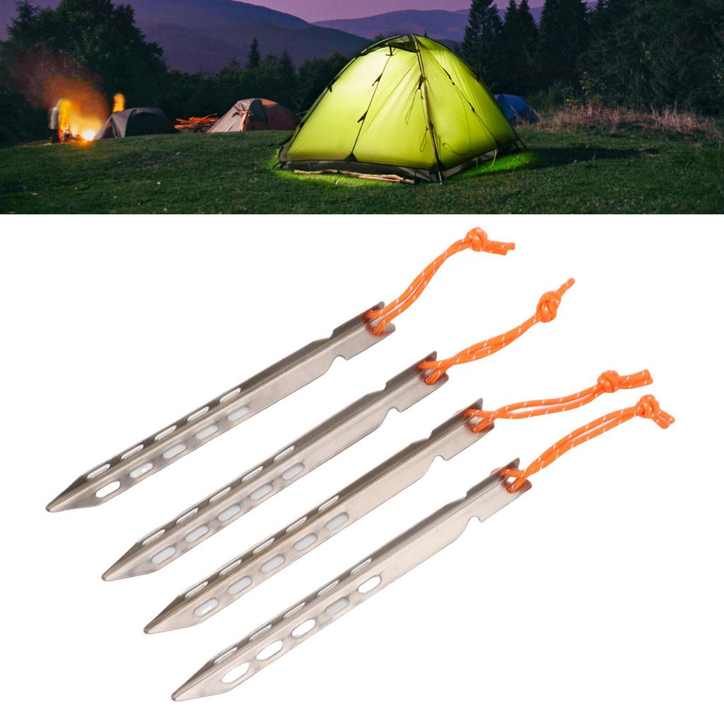 4PCS Tent Stakes with Rope Ti Alloy V Shaped Canopy Pegs for Outdoor Camping Beach Lawn Silver