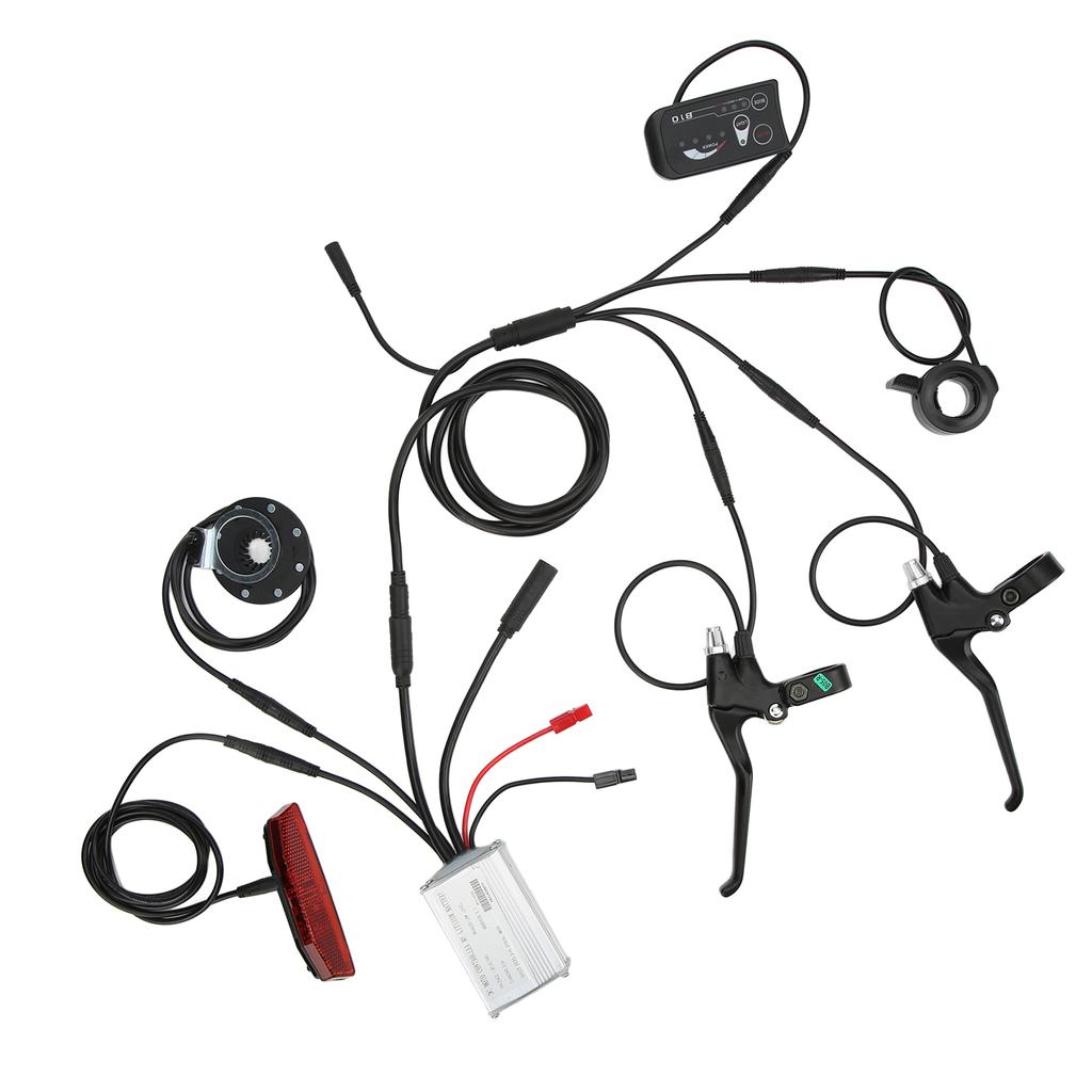1. Full Kit: The package contains 15A waterproof controller, S810 panel, 130X thumb throttle, 8C speed assist, brake handle, 1 to 5 connector and tail lamp, full kit has convenient operation.