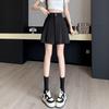 Discover the perfect blend of style and comfort with these high-waisted petite pleated A-line culottes. Crafted from premium polyester, these black wide-leg women's shorts offer a sophisticated silhouette and a flattering fit. The high waistline enhances your figure, making them a versatile addition to any wardrobe. Whether dressing up for a night out or keeping it casual, these culottes are a chic choice for any occasion.