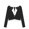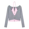 Chic Slimming Two-Piece Halter Knit Cardigan for Women - Stylish Early Autumn Contrast Color Top