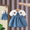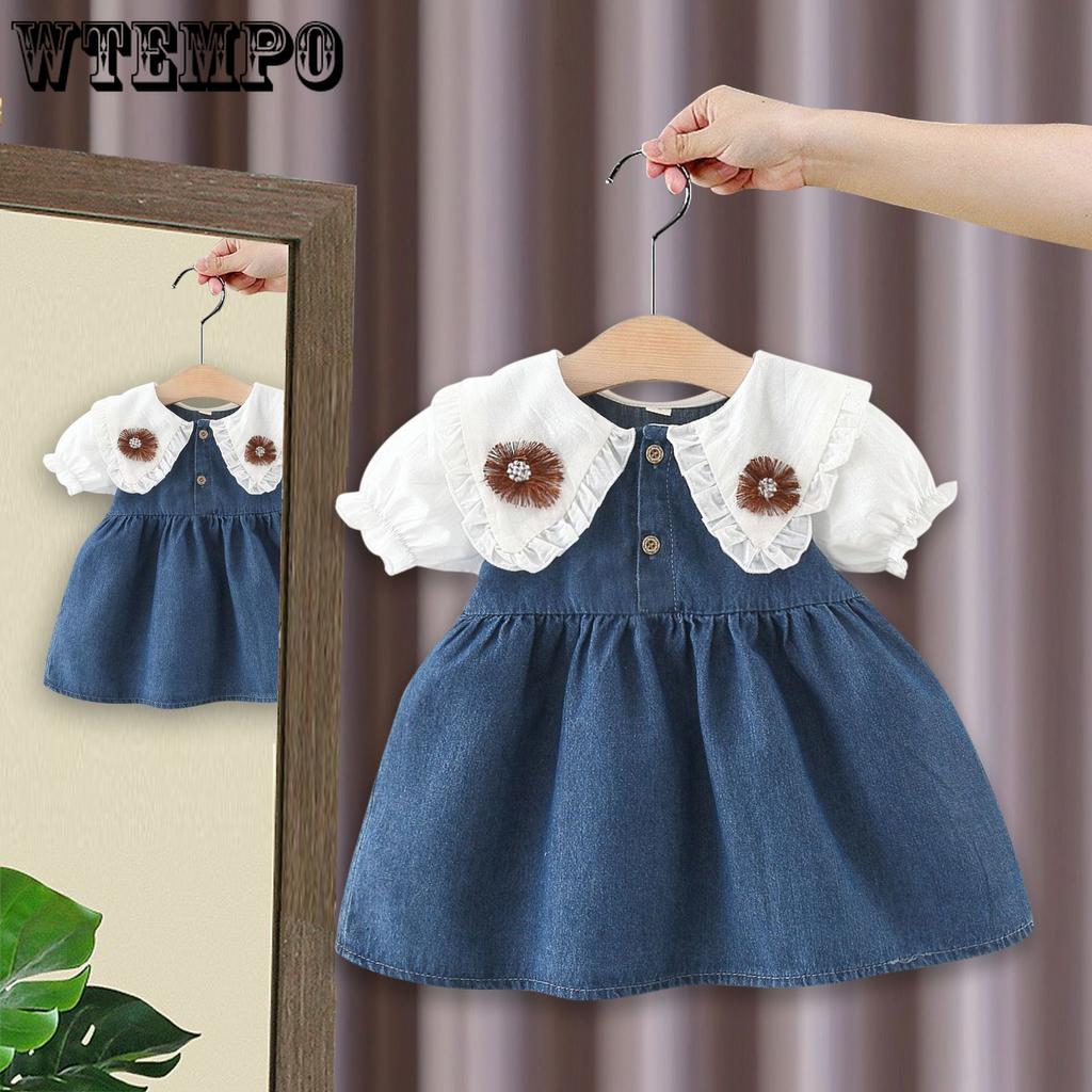 Sommer Mädchen Jeanskleid Baby Blume Kurzärmeliges Jeanskleid Kinderbekleidung Kinderkleid