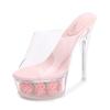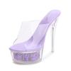 Catwalk sexy heels luminous stiletto waterproof table sandals transparent model crystal shoes wedding shoes