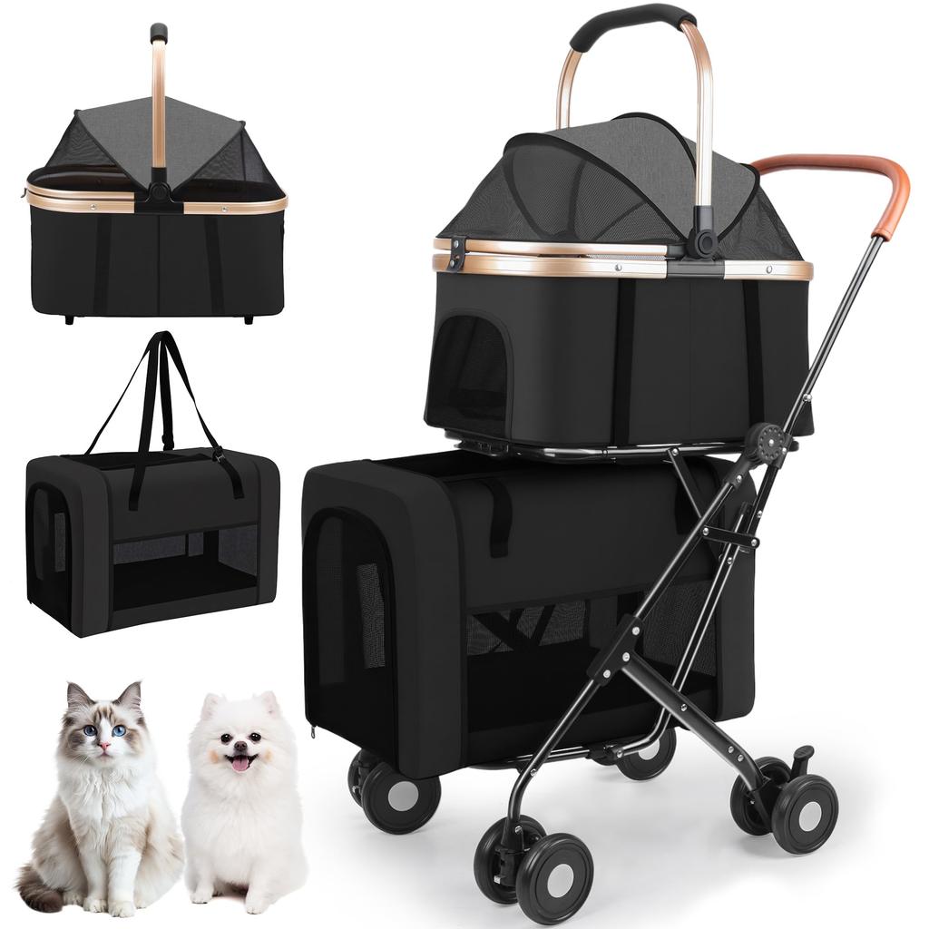 Bolinker Haustierwagen, Separater Typ, Doppeldecker, Großes Fassungsvermögen, Faltbar, Für Hunde, Wagenvorderrad um 360° drehbar, Vorderrad- und Hinterradbremsen, Einfach zu montieren, Kompakt, Leichtgewicht, Faltbar, Oben und unten 2 Etagen, Tragfähigkeit 20 kg, Für Hunde und Katzen, Multifunktional, Leichtgewicht, Atmungsaktiv, Für Spaziergänge, Einkaufen, Ausflüge, Reisen