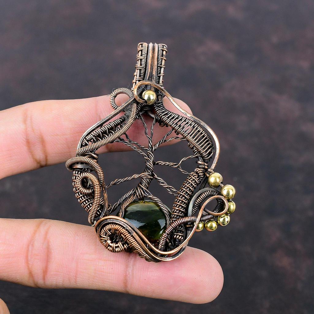 Tree Of Life Australian Chrome Chalcedony Pendant Copper Wire Wrapped Pendant Handmade Pendant Copper Wire Jewelry Gemstone Pendant For Gift