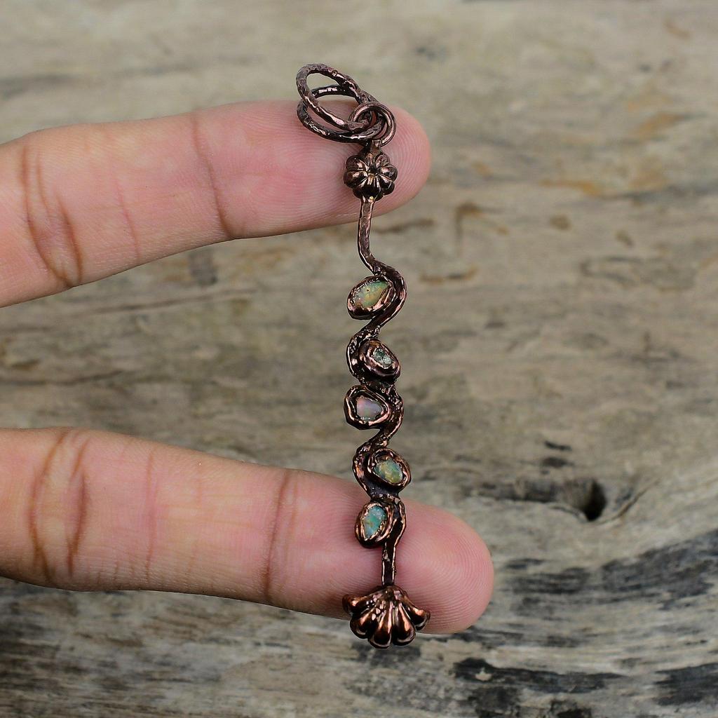 Ethiopian Opal Pendant Electroformed Copper Pendant Handmade Gemstone Pendant Unique Electroformed Jewelry Antique Pendant Anniversary Gifts
