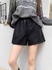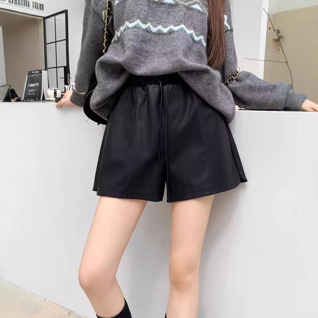 PU Leather High-Waisted Matte Shorts for Women - 2024 Autumn/Winter, Wrinkle-Resistant, Thickened, Wide-Leg, A-Line Design.