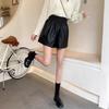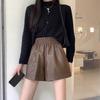 Women's High-Waist Black Leather Shorts: Small, Wide-Leg, Casual Autumn/Winter Base Layer.