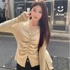 Women's V-Neck French Lace Patchwork Pleated Sweater for Autumn/Winter