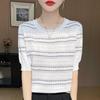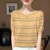 Erleben Sie ultimativen Sommerkomfort mit unserem Damen Eis-Seide Colorblock Strick-T-Shirt. Dieses stilvolle T-Shirt aus einem luxuriösen Kunstseidenmaterial, bekannt als Eisseide, bietet ein kühles und atmungsaktives Tragegefühl, perfekt für warme Tage.. Mit einem klassischen Rundhalsausschnitt und kurzen Ärmeln vereint es mühelos Stil und Bequemlichkeit.. Das Colorblock-Design verleiht ihm eine moderne Note und macht ihn zu einer vielseitigen Ergänzung für Ihre Sommergarderobe.. Ideal für jeden Freizeitausflug, dieses T-Shirt ist der Ort, wo Komfort auf Mode trifft.
