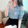 Schicke schulterfreie Chiffonbluse mit Rüschen - Damen Sommer 2024 Kurzarm-Top