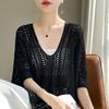 Spring/Summer V-Neck Loose Knit Cardigan with Sun Protection.