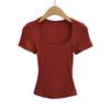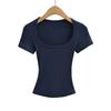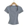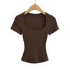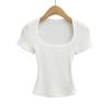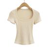 Sommer Quadratischer Ausschnitt Hochelastisches Crop Top Damen Kurzarm Sexy Top Slim Pullover Unterhemd