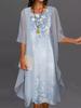 Damen Elegantes Kleid mit Farbverlauf und Aufdruck, zweiteiliges Set, Cardigan-Überzüge, kurzärmelig, Sommerkleid aus Netzstoff