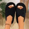 Winter-Sandalen mit gekreuzten Riemen, einfarbig, Zehen offen, flache Schuhe, bequeme und warme Hausschuhe
