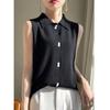 Women's Wool Knit Lapel Collar Sleeveless Base Layer Vest
