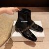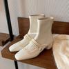 Zweites Haar! Su Yinyin's gleiche Schuhe quadratische Nieten Reißverschluss hinten mittelhohe elastische Stiefel Damen dünne kurze Stiefel