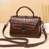Diese Tasche hat eine im Vintage-Stil gehaltene, strukturierte Silhouette und ist aus ölgewachstem Rindsleder gefertigt.. Es verfügt über eine krokodilartige Textur auf der Vorderseite, einen oberen Griff und einen verstellbaren Schultergurt, wodurch ein modischer und retro-artiger Look entsteht.