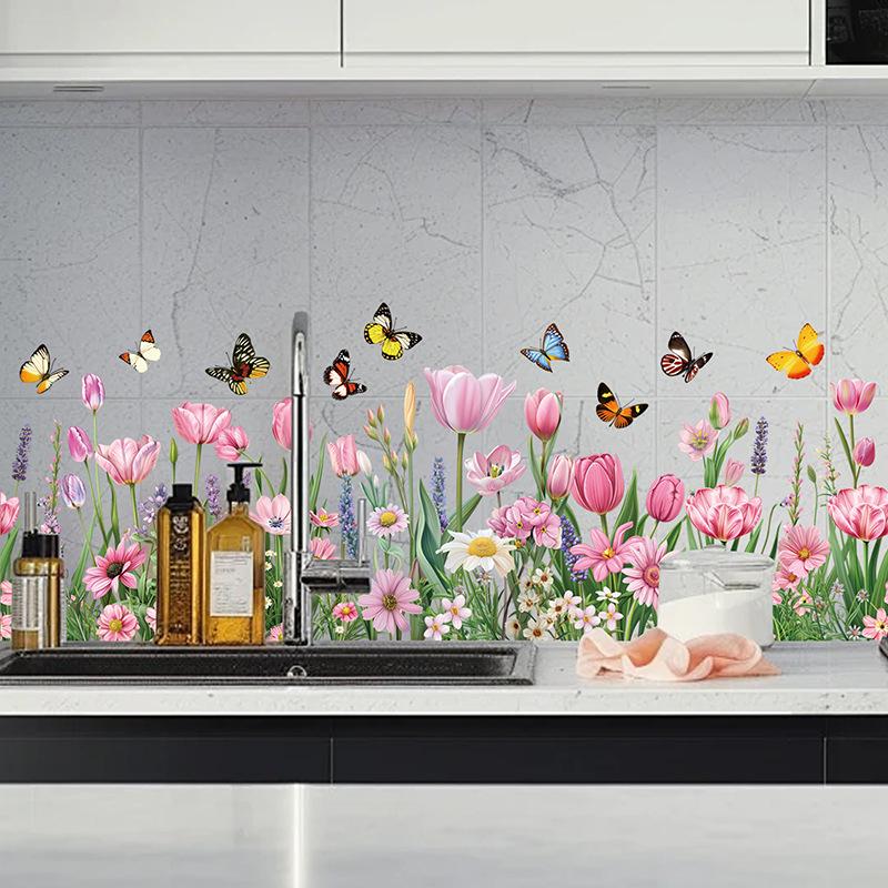 Neue Produkte, Blumen und Schmetterlinge, Küchentapete, Elektrostatische Wandaufkleber, Klebstofffrei, Innenbereich, Glasaufkleber
