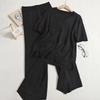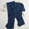 Grenzüberschreitendes Strick-Zweiteiler-Set: Lockeres Oberteil mit Schlitz und hochtaillierte, drapierte Hose mit geradem Bein