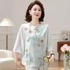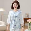 Women's Summer Chiffon Blouse: New Chinese Style, National Influence T-Shirt for Middle-Aged & Elderly with Seven Sleeves.