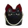 Niche design kitten bag messenger bag female, new Xiaoxiangfeng pearl portable shoulder bag cartoon chain bag