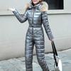 Einfarbiger Skianzug mit Kapuze, warme, verdickte Daunenjacke, Nudelanzug, Brotanzug, einteiliger Skianzug