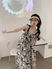 Damen Retro Tintenprint Schnür-Plissee-Camisole-Top