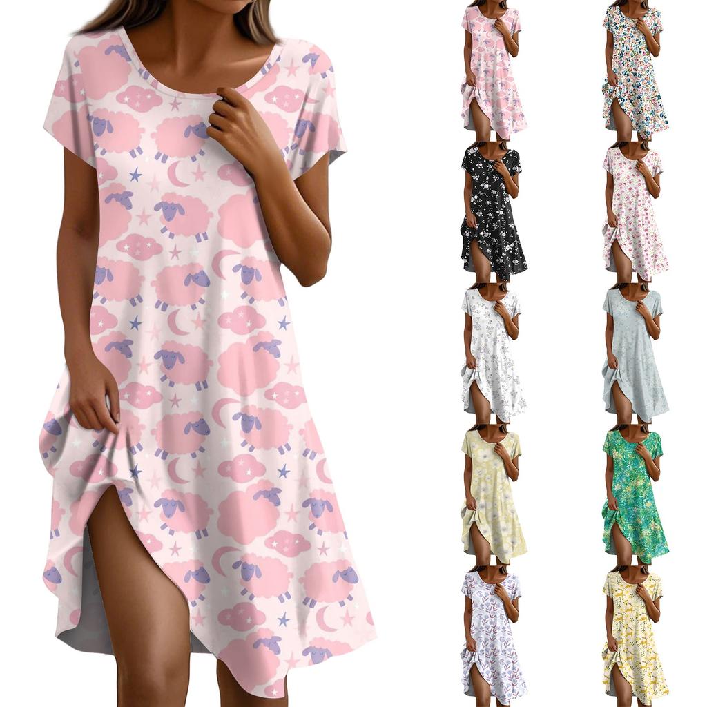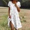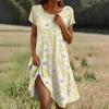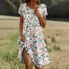 Kurzärmeliges Boho-Kleid für Damen, lässig, lockere Passform, Sommerkleid mit Blumendruck und Taschen