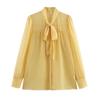 Experience a perfect blend of European and American fashion with this 2025 Spring Women's Two-Color Lightweight Long-Sleeve Shirt. Crafted from high-quality polyester, this shirt combines durability with a soft, comfortable feel. Its solid pattern is elegantly accented by a v-neckline and a charming bowknot decoration, adding a touch of sophistication to your wardrobe. The long sleeves make it an ideal choice for transitioning through seasons, providing both style and versatility for various occasions.