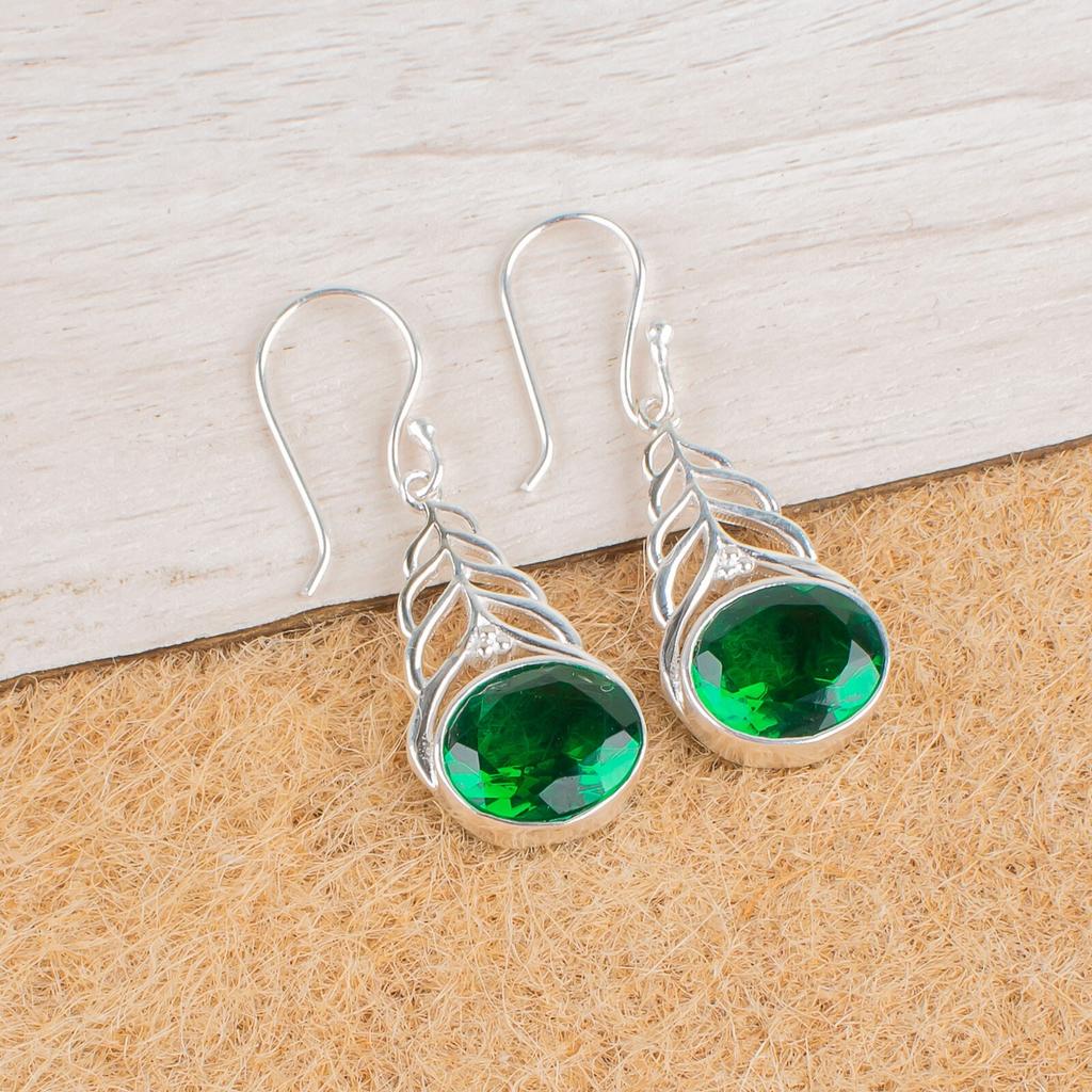 Chrome Diopside Gemstone 925 Sterling Silver Jewelry Drop/Dangle Earrings 1.64" CE-1-2