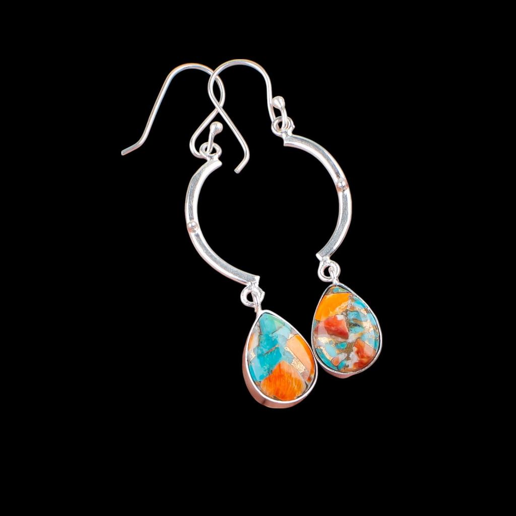 Natürlicher Stacheliger Auster Edelstein 925 Sterling Silber Schmuck Hängende Ohrringe 2,60" EE-43-35