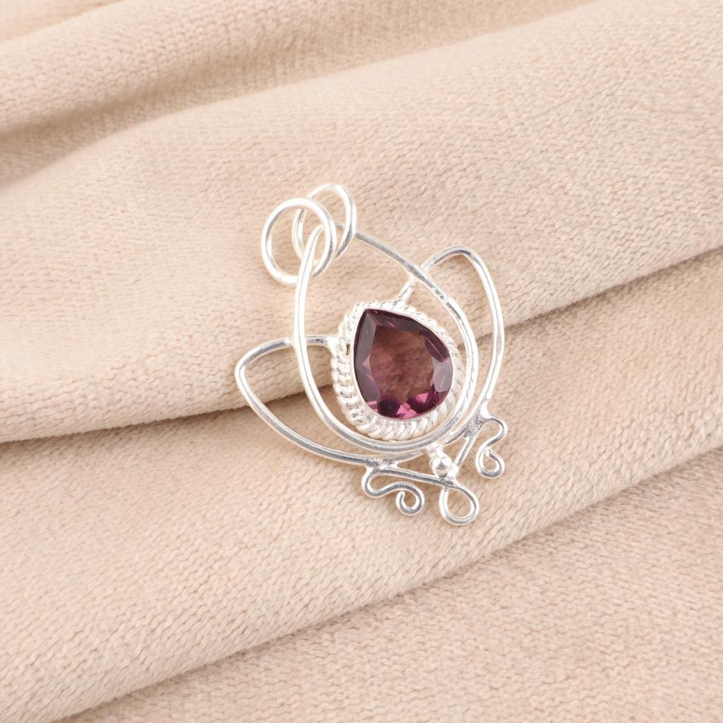 Natürlicher Rhodolith Edelstein 925 Sterling Silber Schmuck Handgefertigter Lotus Anhänger PP-38-41