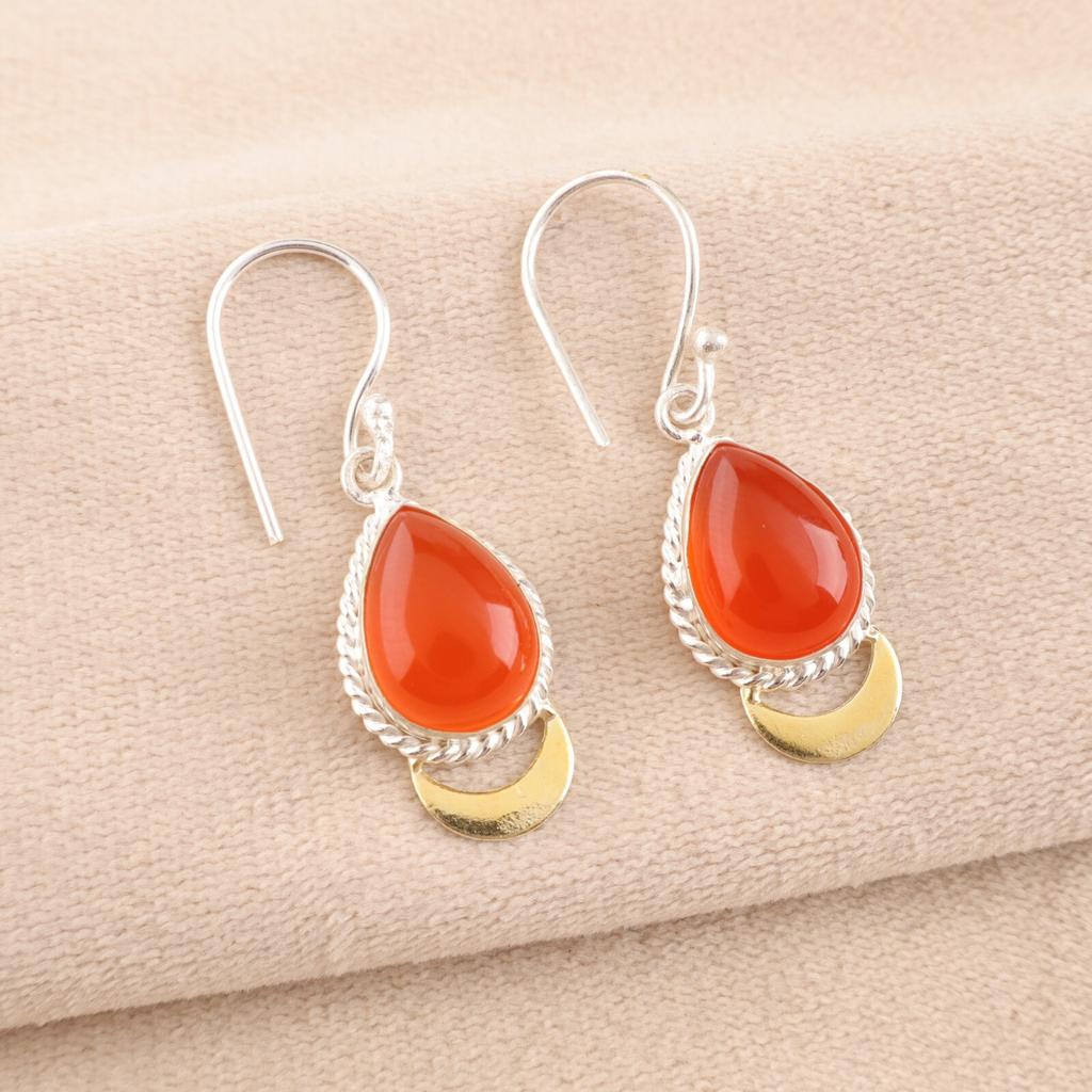 Carnelian Gemstone 925 Sterling Silver Jewelry Handmade Tear Drop Earrings 1.5" EE-162-20