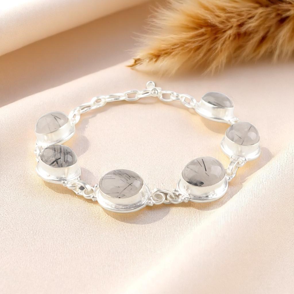 Natürlicher Schwarzer Rutil Edelstein 925 Sterlingsilber Schmuck Handgefertigtes Armband 8,5" RB-3-19