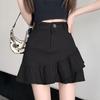Damen Schwarzer High Waist A-Linien Midi-Rock mit Rüsche - Frühling/Sommer Schlankmachendes und Anti-Expositions-Design