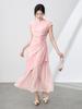 Neues Cheongsam-Kleid im chinesischen Stil: Damen Plissiertes Sommer A-Linien, Französisch Inspiriertes, Taillenverschlankendes Langes Kleid