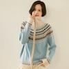 Damen Fair Isle Kaschmir Strickjacke mit Reißverschluss - Gemütlicher Herbst-/Winterpullovermantel.