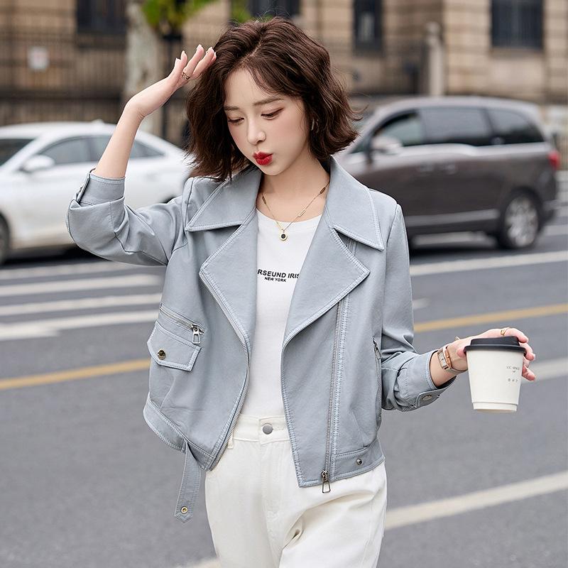 Elevate your style with this fashionable women's slim fit motorcycle leather jacket, perfect for the Spring 2025 season. Designed with a tailored neckline and long sleeves, this jacket is crafted from high-quality artificial fur material, ensuring a luxurious feel while remaining cruelty-free. The addition of faux fur provides extra warmth and sophistication. Equipped with functional pockets, this casual outerwear offers both practicality and a youthful, trendy look that's great for any occasion.