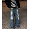 Unisex Retro High-Waisted Wide-Leg Graffiti Jeans - Petite Flared Autumn/Winter Casual Pants