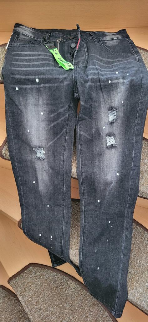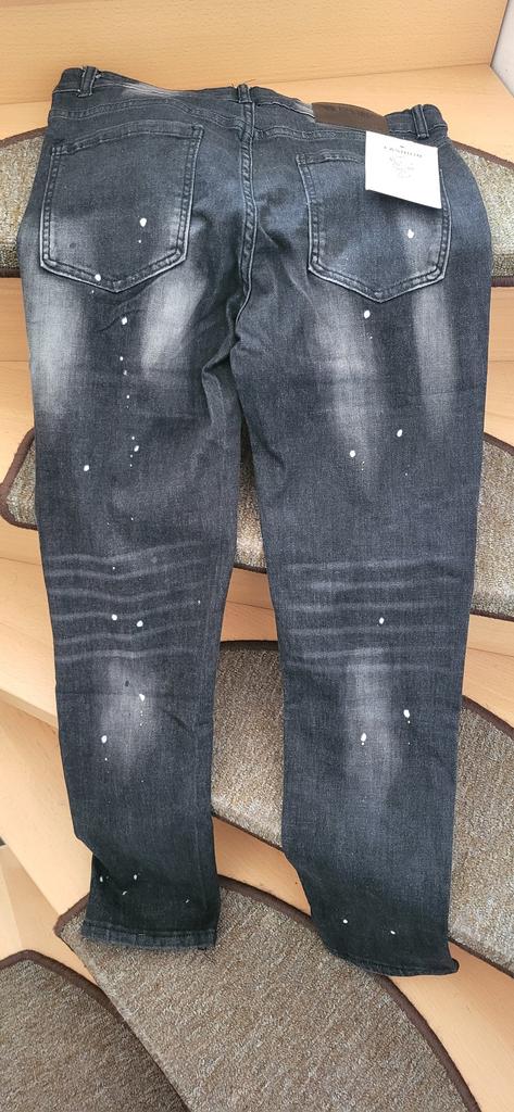 Die Hose ist am Bund und an den Beinen enger als angegeben. Die Verwaschung entspricht nicht ganz den Abbildungen und die weißen Punkte sehen aus wie Farbspritzer nach dem Tapezieren. Der Reißverschluss ist verrostet und für den obersten Knopf gibt es kein Loch zum Zuknöpfen.