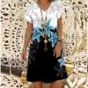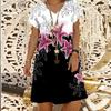 Sommermode Damen V-Ausschnitt Kurzarm Retro Blumenmuster Kleid Sex Kurzer Rock Kleider
