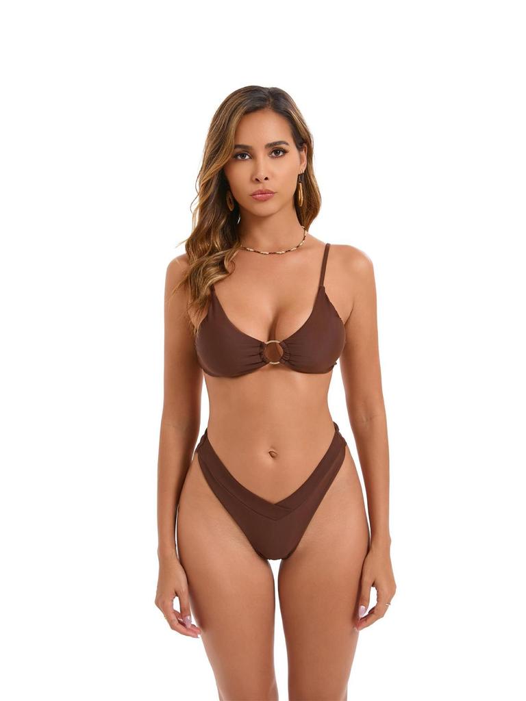 2025 Europäischer & Amerikanischer Doppelseitiger Nylon Einfarbiger Sexy Bikini Badeanzug