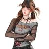 Y2K T-Shirts für Mädchen Retron Streetwear Langarm Hollow Out Tees für Damen T-Shirts
