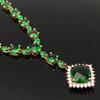 Elegante vergoldete Kupferanhänger-Halskette mit grünem Chalcedon und Vollpavé-Diamanten