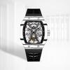 Swiss True Tourbillon Men's Mechanical Fashion Watch with Rubber Strap and Hollow Square Design