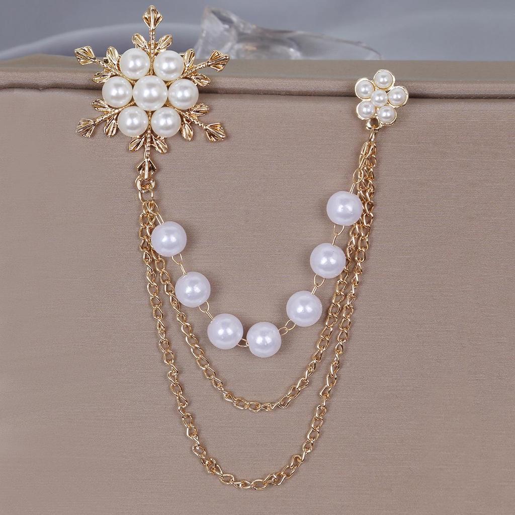 Koreanische minimalistische Perlen- & Schneeflocken-Quastenbrosche