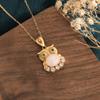 Vergoldeter Retro Eulenanhänger mit eingelegtem Chalcedon & Achat Halskette - Geburtstagsgeschenk