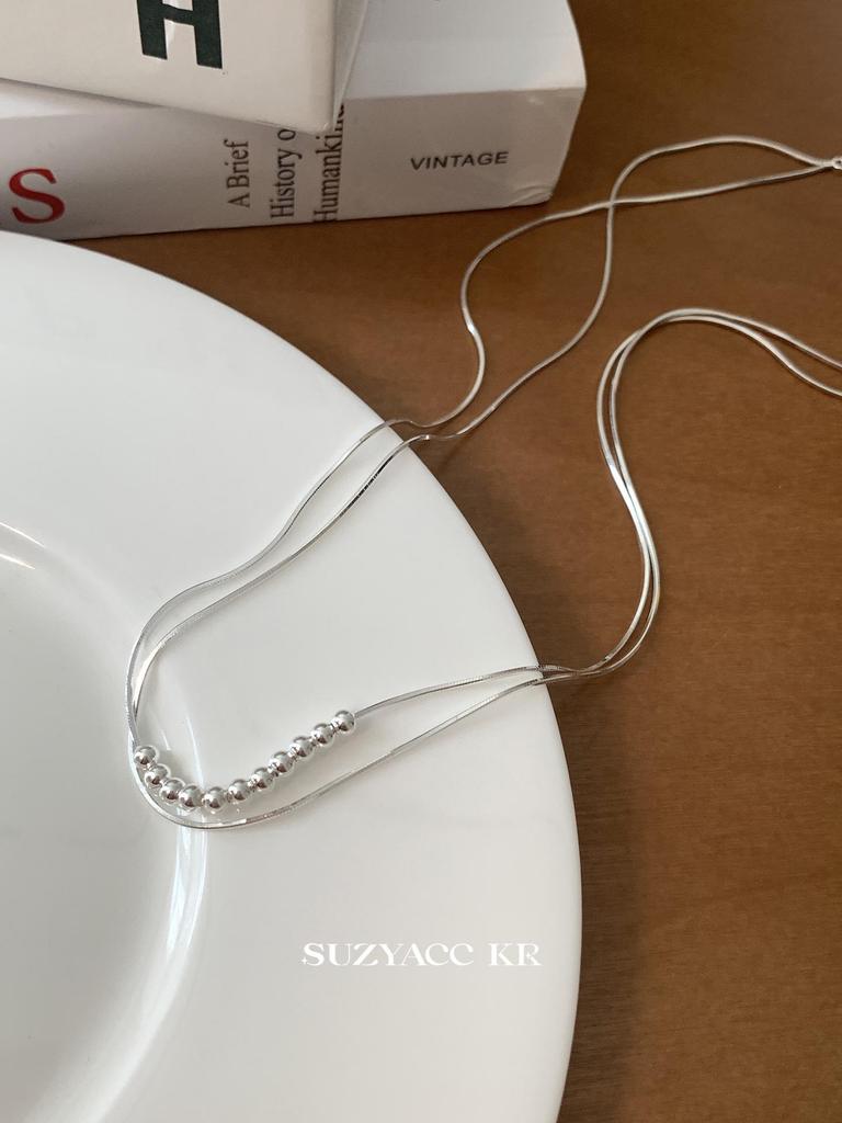 Doppellagige Metallhalskette mit runden Perlen für Damen - Modisches & vielseitiges Schlüsselbeinketten-Design