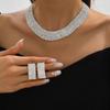Hochwertiges Übertriebenes Braut-Strass-Halsketten-, Ohrring-, Armband- & Ring-Set für Hochzeitsfotografie