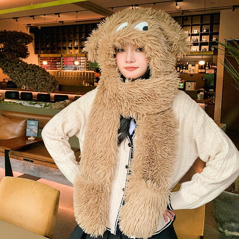 Cartoon Welpen Plüschmütze mit Schal und Handschuhen Set - Langohr-Design